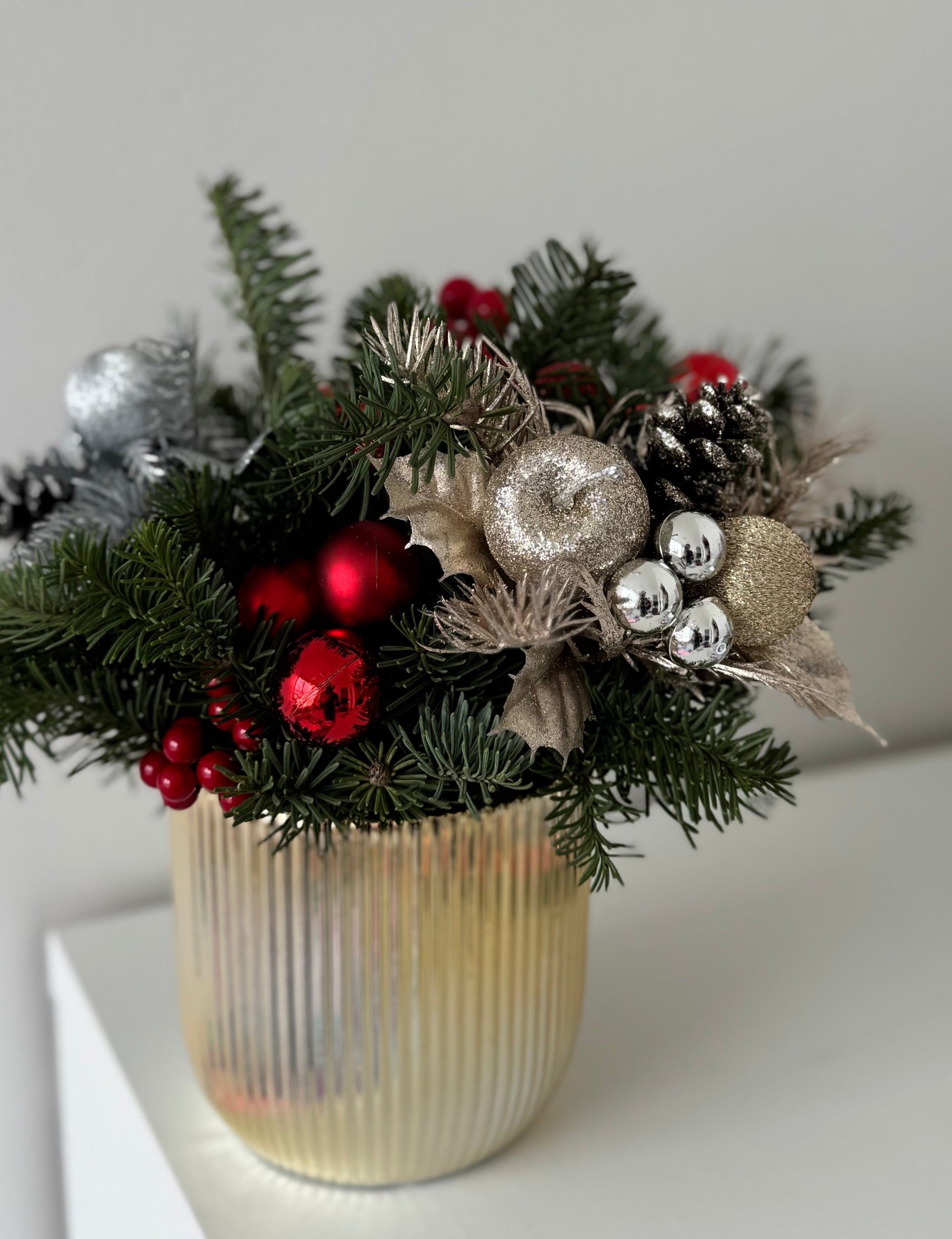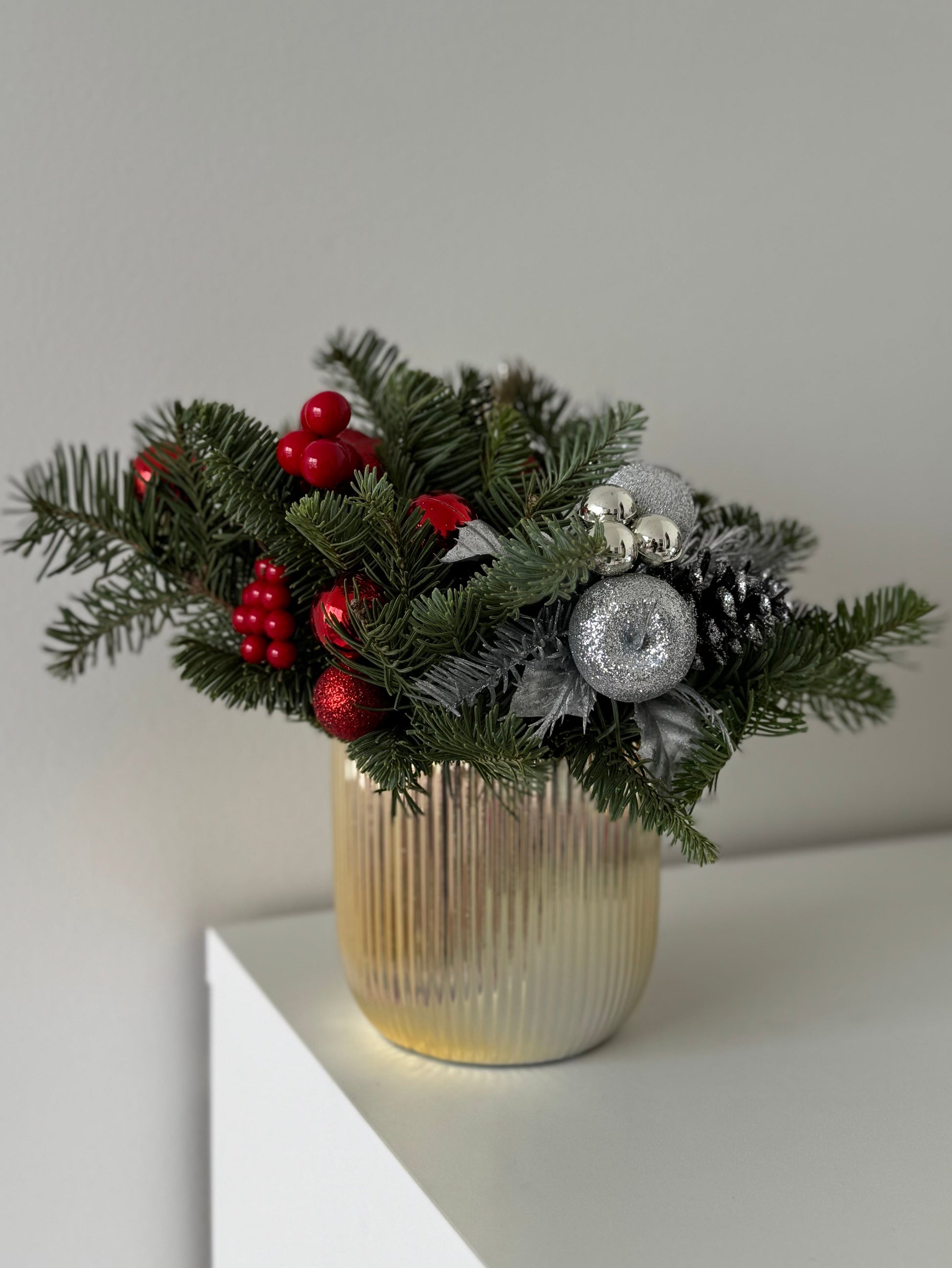 A composition in a pot made of natural fir with minimalistic dеcor.